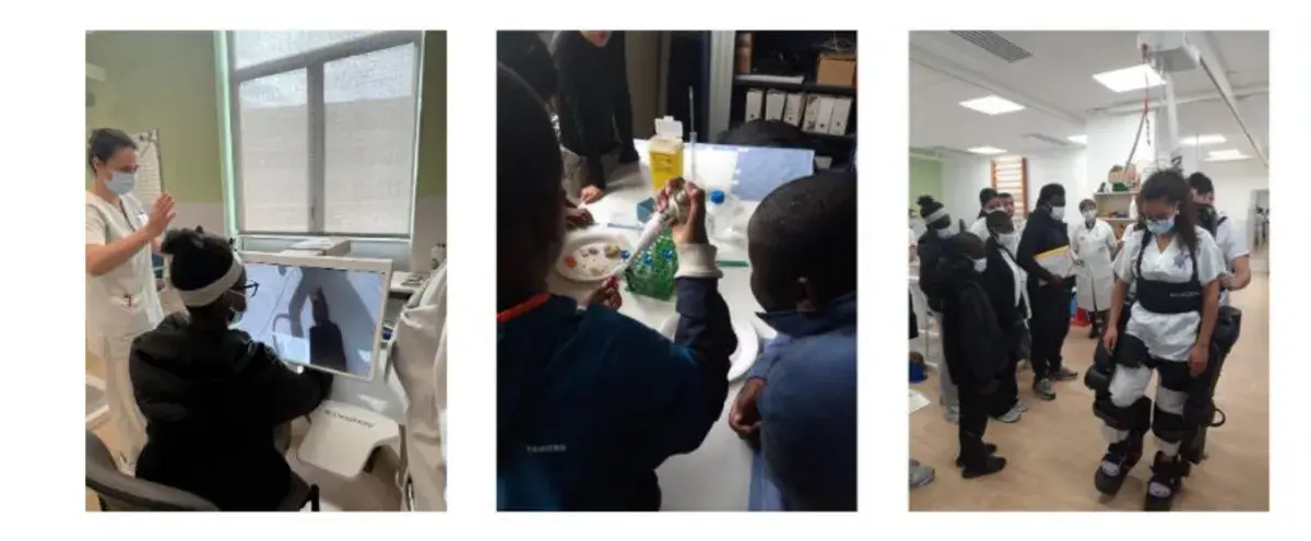 À l'hôpital René-Muret, le 8 octobre 2025, une après-midi a été proposée à des collégiens de la maison de quartier de la ville de Sevran, avec démonstration d’un exosquelette, atelier d’activité physique adaptée et mini-conférences sur les microbes et le protoxyde d’azote. Les jeunes ont particulièrement apprécié les échanges, l’accueil et les animations proposées.