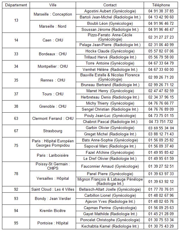 Pour participer à l’étude, vous pouvez joindre l’un des centres participant dans la liste suivante: