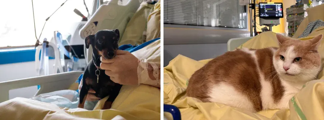 La visite d’un animal de compagnie est proposée aux patients conscients afin d’entretenir le lien affectif souvent fort avec leur animal, soulager leur sentiment de solitude, calmer leur anxiété et renforcer leur adhésion aux soins.