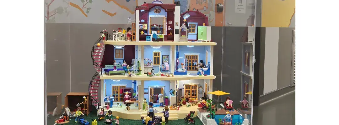 « La maison tous risques » est un outil pédagogique mettant en scène des accidents domestiques potentiels en utilisant une maison et des personnages Playmobil, acquis avec le soutien de l'association Magie à l'hôpital.