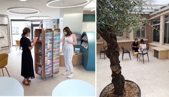 L’Espace Soins & Vie Martine Midy de 300 m² comprend une salle d’activité physique, un espace d’information & prévention incluant un espace numérique, une agora, un patio paysagé, une salle destinée aux ateliers & activités, un espace Snoezelen, un box de consultations et de soins individuels et un espace pour les expositions culturelles. A venir en 2022 : un jardin thérapeutique et un piano.