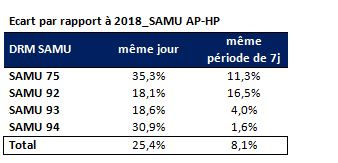 Le nombre de dossiers de régulation médicale des quatre SAMU (75, 92, 93 et 94), dont l’activité reste soutenue, continue de connaître une augmentation par rapport à la même période de l’année 2018.