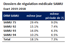 Le nombre de dossiers de régulation médicale des quatre SAMU de l’AP-HP (75, 92, 93 et 94) continue de connaître une augmentation par rapport à la même période de l’année 2018.