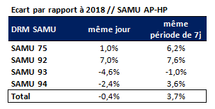 Le nombre de dossiers de régulation médicale des quatre SAMU de l’AP-HP (75, 92, 93 et 94) connaît une très légère augmentation.