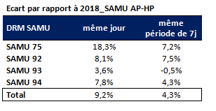Le nombre de dossiers de régulation médicale des 4 Samu de l’AP-HP (75, 92, 93 et 94) connaît une augmentation par rapport à la même période de l’année 2018.