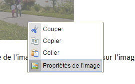 Pour modifier manuellement la taille de l'image, faites un clic droit sur l'image côté éditeur WYSIWYG et sélectionnez le bouton suivant :
