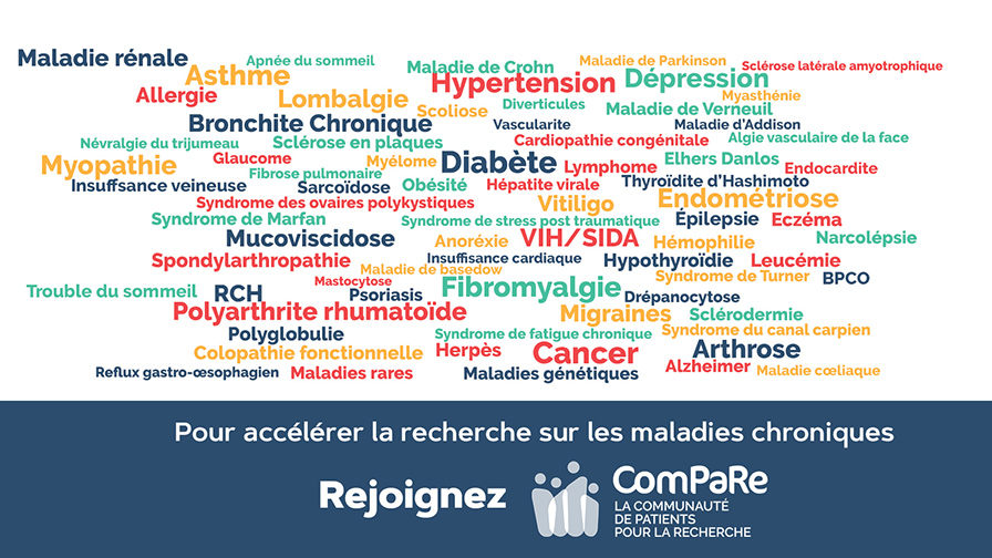 Pour participer à ComPaRe, il suffit d’être majeur, francophone, détenteur d’une adresse mail et être suivi pour une ou plusieurs maladies chroniques (c’est-à-dire une affection nécessitant un suivi médical de plus de six mois).