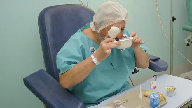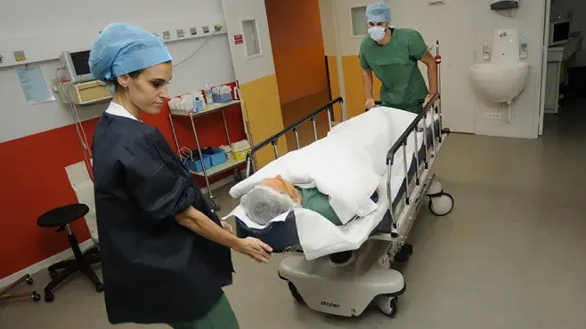 Le patient arrive le matin même ou en début d’après-midi, tout dépend de son heure de passage au bloc opératoire. Il est accueilli par l’équipe soignante et celle-ci vérifiera si les consignes données ont été respectées. Après l’intervention, une première prise en charge par l’équipe soignante dans la salle de réveil aura lieu. L’aide-soignante vérifie alors la tension, la respiration et la saturation du patient. Le patient attend 10-15 minutes en salle de réveil pour que les équipes médicales puissent s’assurer que tout va bien. Il est ensuite amené à son box où il recevra une collation.